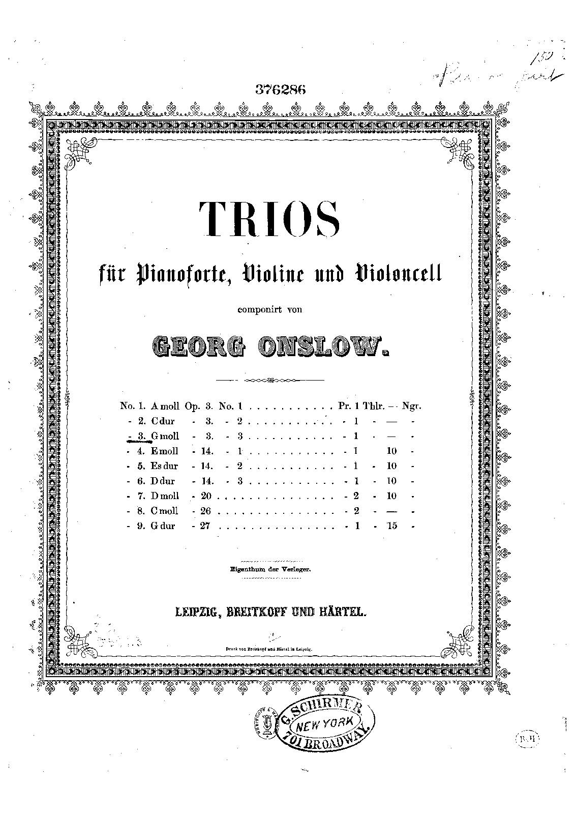 | Genre Categories | Trios; For violin, cello, piano; Scores featuring the violin; |