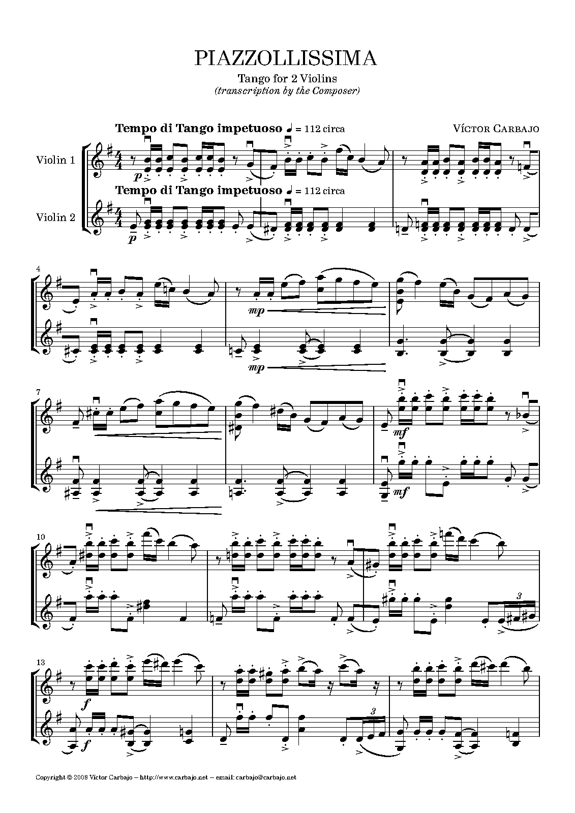 | Movements/SectionsMov'ts/Sec's | 1 tango |