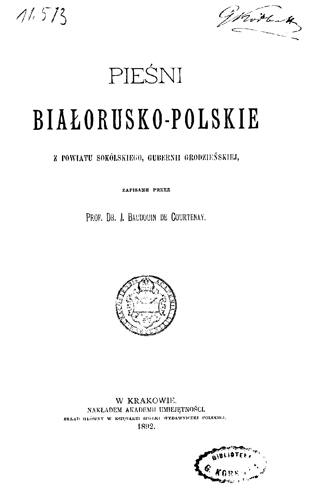 Contains 20 songs from Polish Sokółka County (pl. powiat sokólski), nowadays bordering with Belarus.