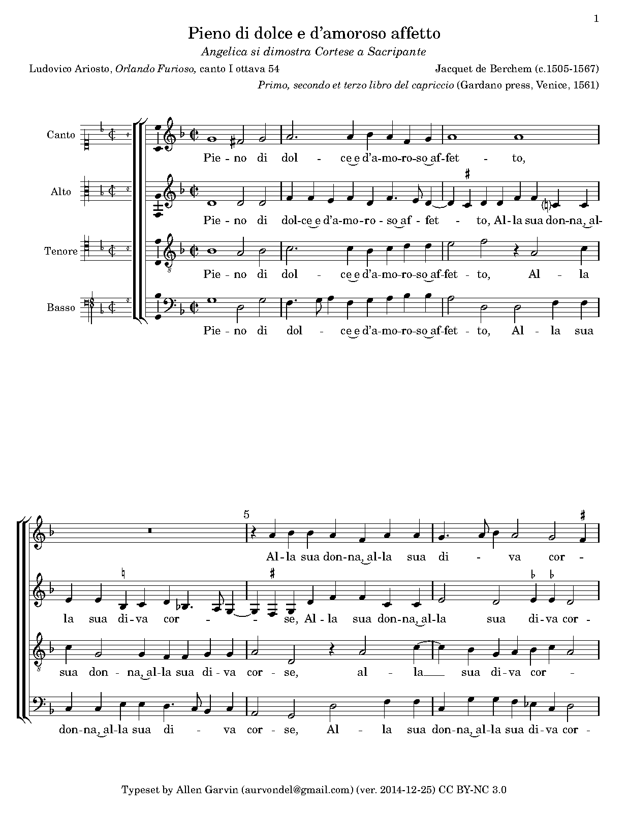 Pieno di dolce e d’amoroso affetto (Berchem, Jacquet de)