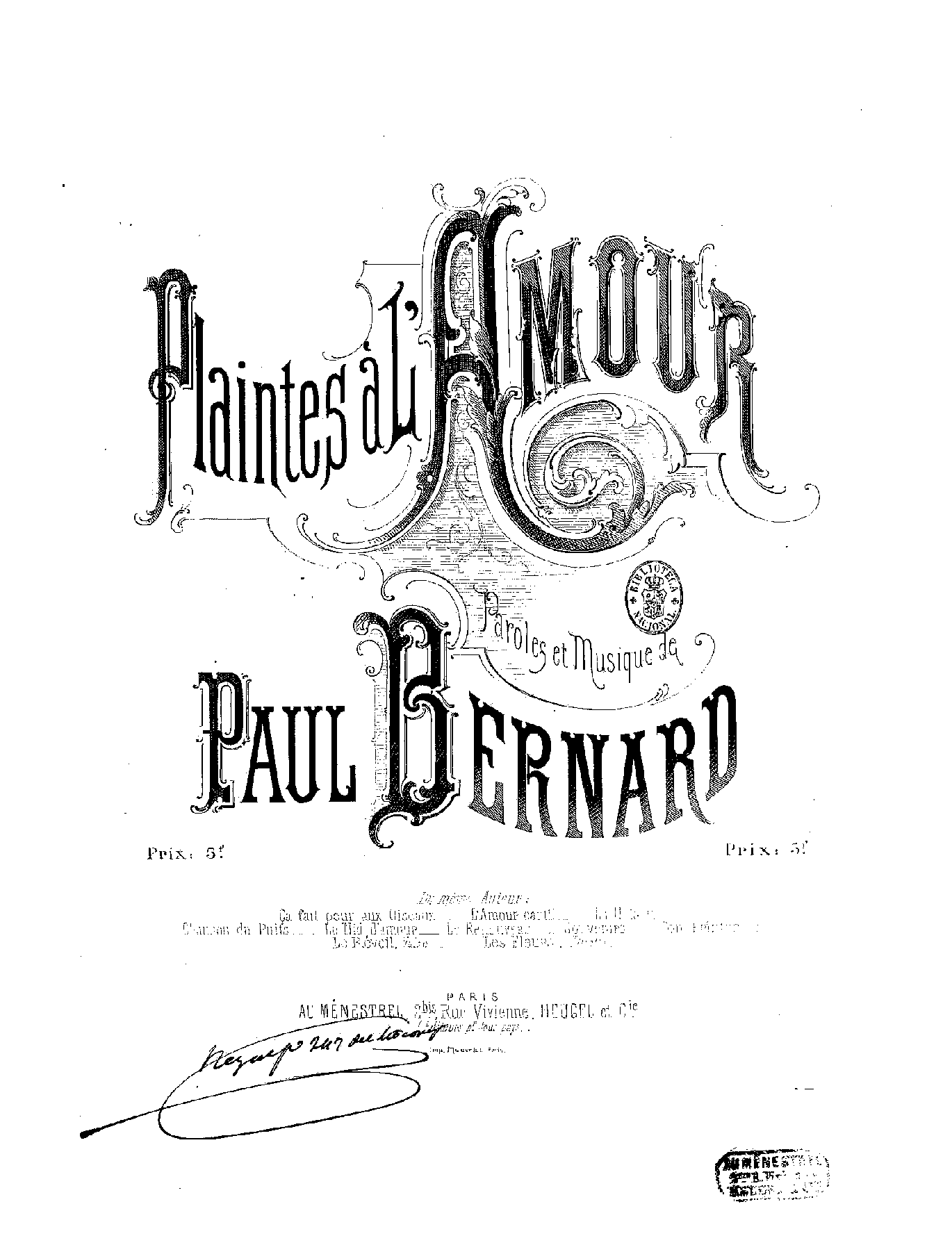| Work Title | Plaintes à l'amour |