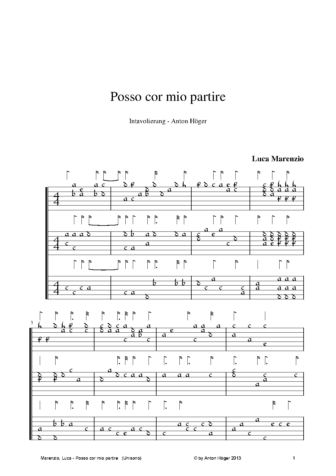 Misc. Notes Intavolation in French Lute-tabulature (Unisono). If performed I would look forward about a small reference to my efforts.