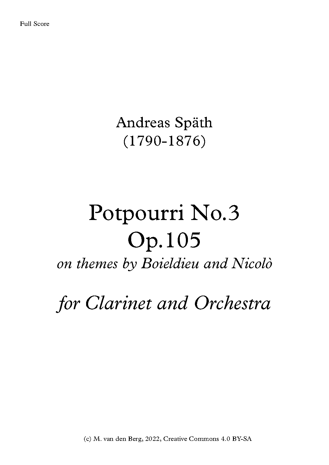 | Genre Categories | Potpourris; For clarinet, orchestra; Scores featuring the clarinet; |