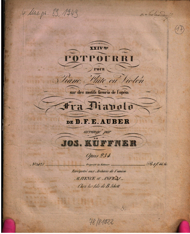 | Alternative. Title | XXIVme potpourri pour piano, flûte ou violon sur des motifs favoris de l'opéra Fra Diavolo de D.F.E. Auber |