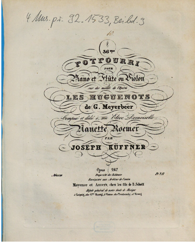 | Alternative. Title | 36me potpourri pour piano et flûte ou violon sur des motifs de l'opéra Les huguenots de G. Meyerbeer |