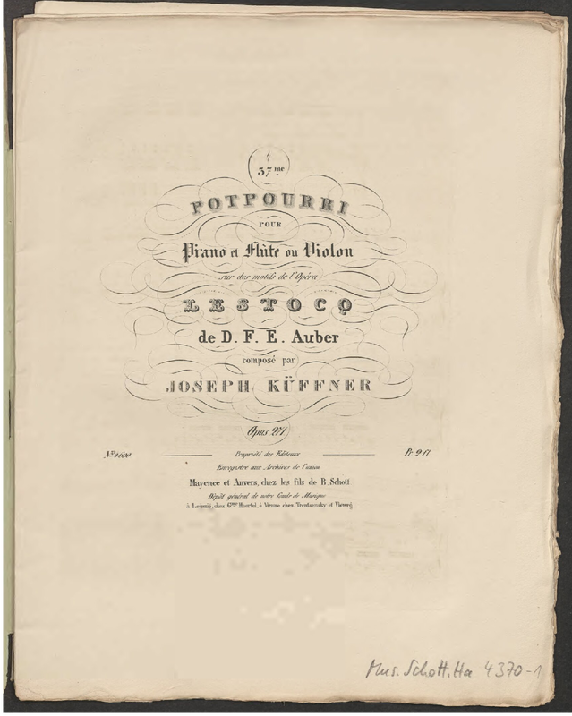 | Alternative. Title | 37me potpourri pour piano et flûte ou violon sur des motifs de l'opéra Lestocq de D. F. E. Auber |