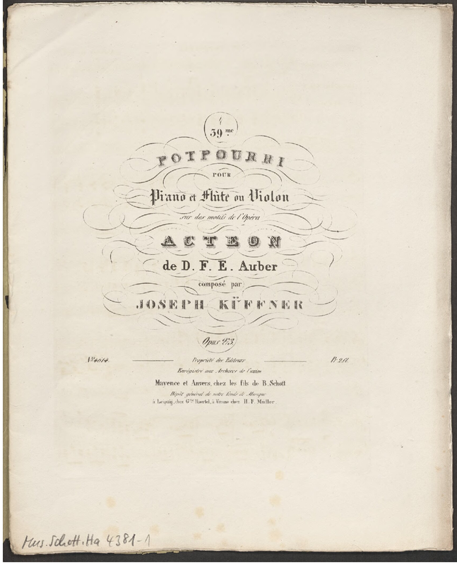 | Alternative. Title | 39me potpourri pour piano et flûte ou violon sur des motifs de l'opéra Acteon de D. F. E. Auber |