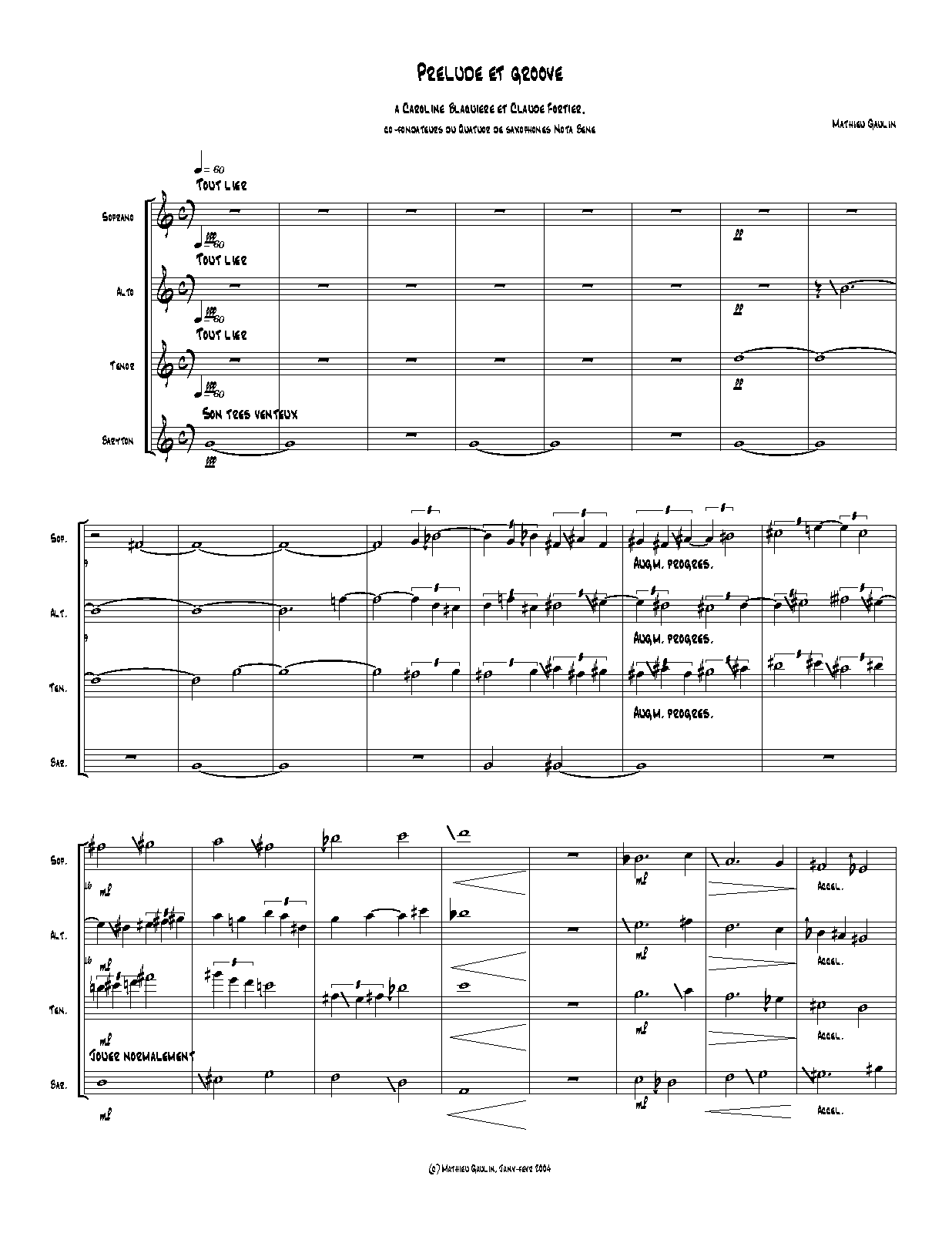 | Dedication | à Caroline Blaquière et Claude Fortier, co-membres fondateurs du Quatuor de saxophones Nota Bene |