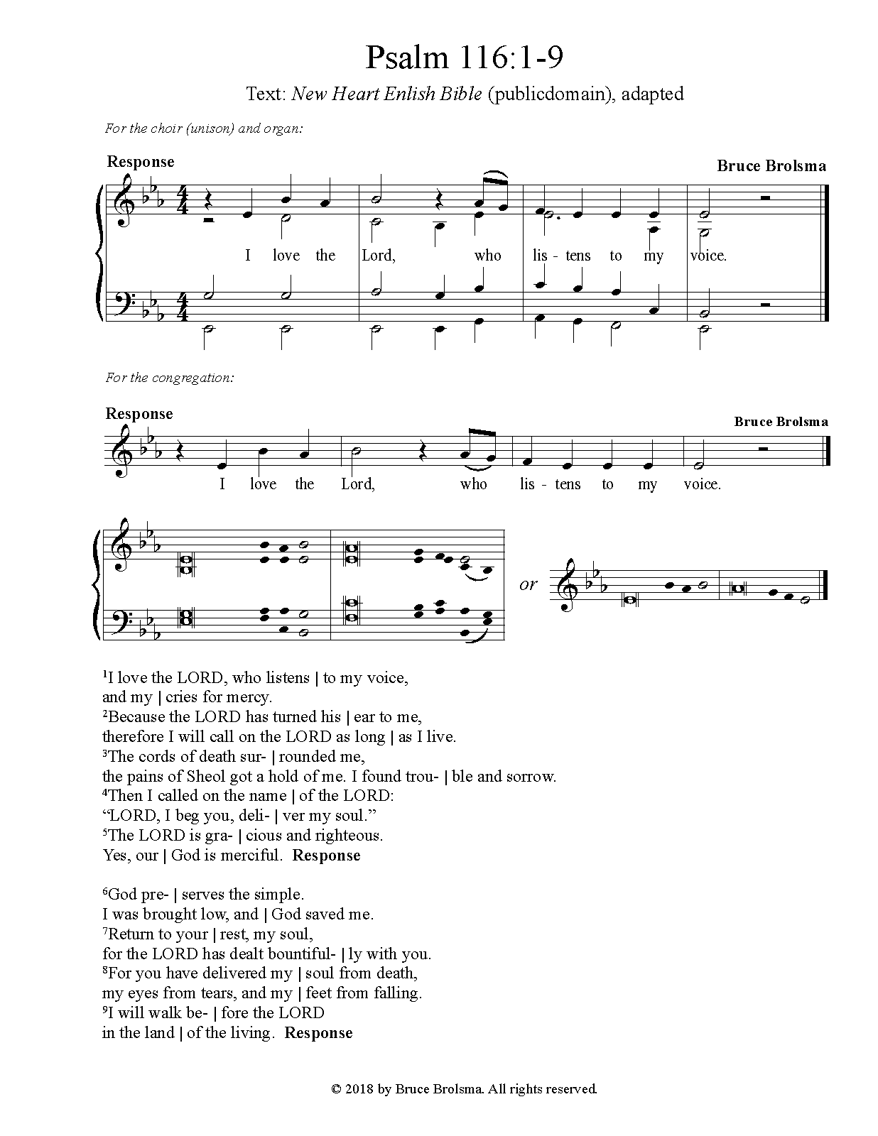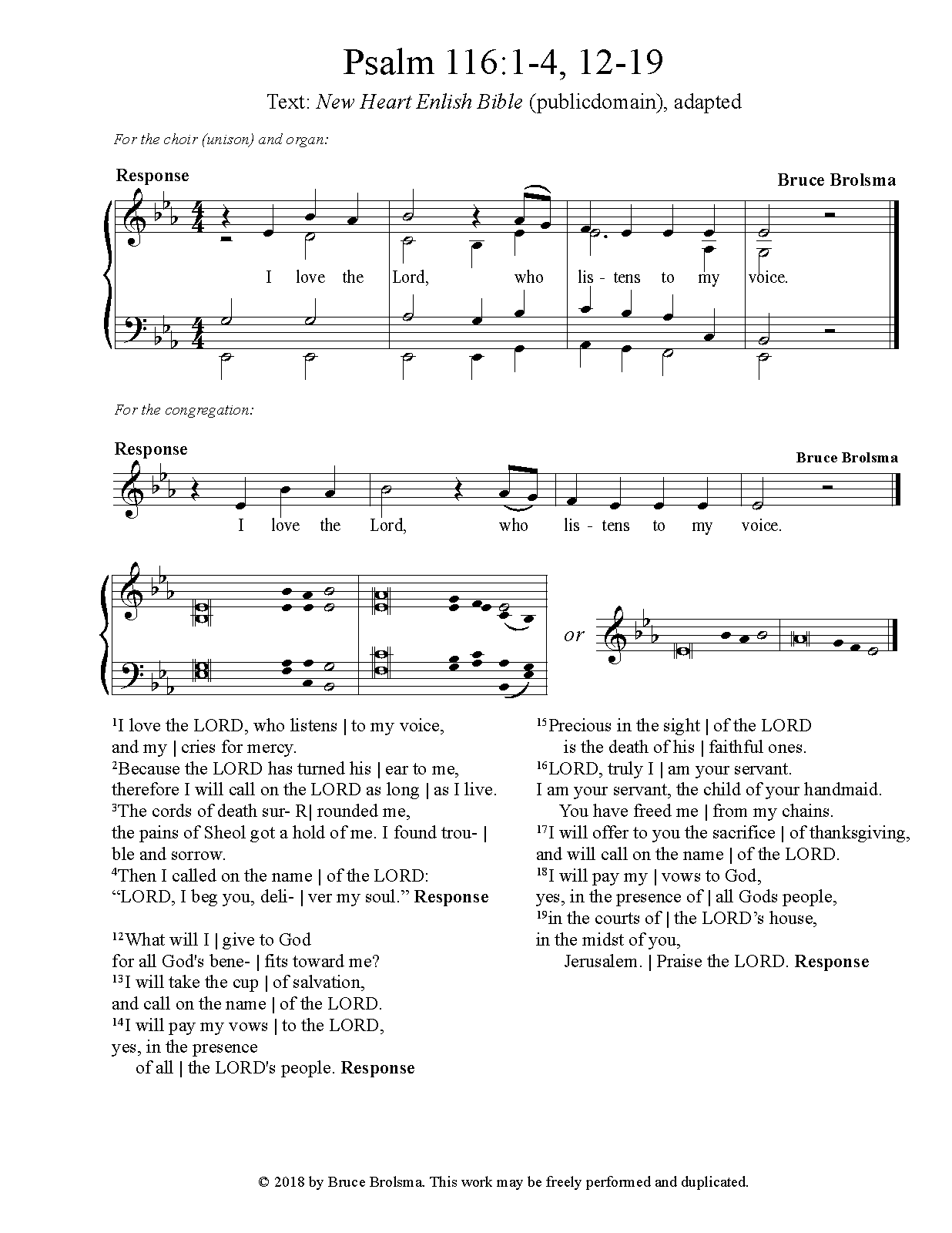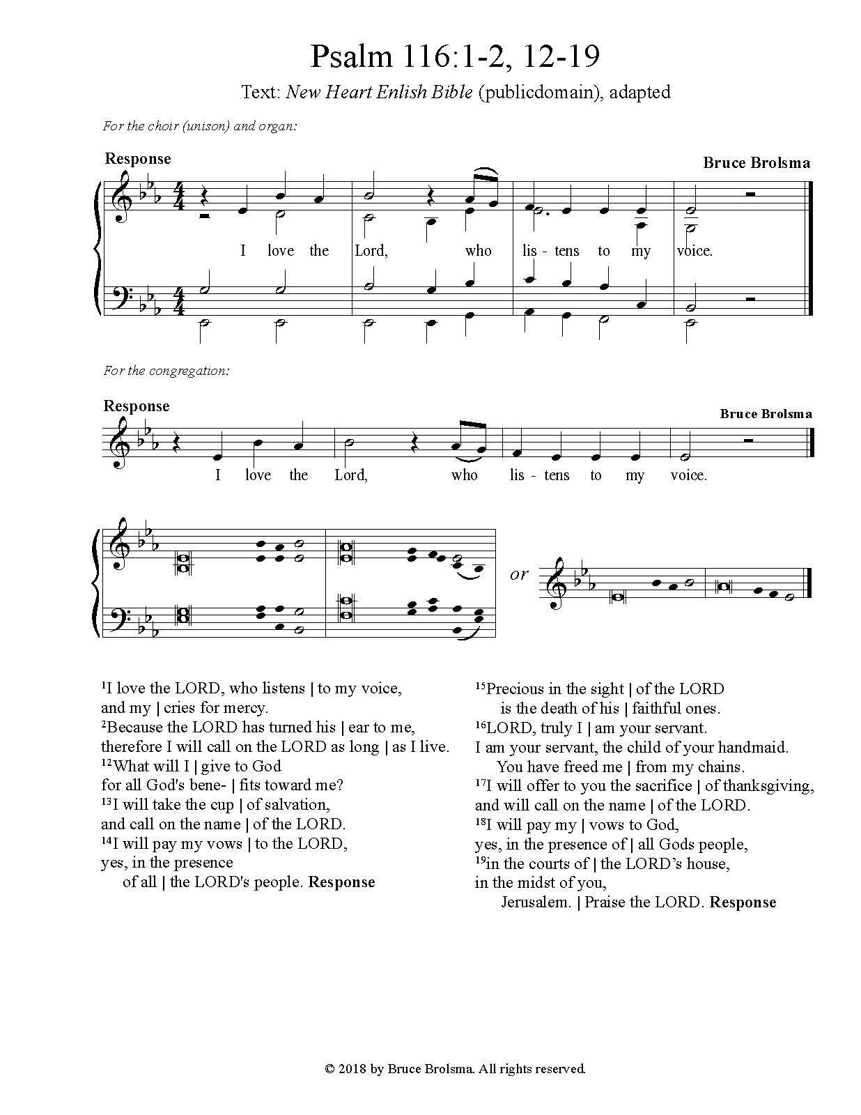 Response and verses may be performed by a choir or the congregation. Music and words may be accessed by the engraving file (MusicXML) or via screenshots of the PDF file. |