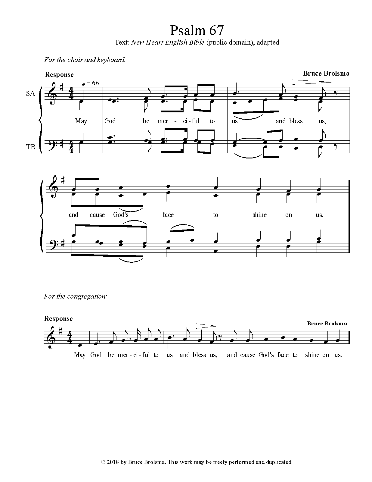 Response and verses may be performed by a choir or the congregation. Music and words may be accessed by the engraving file (MusicXML) or via screenshots of the PDF file. |