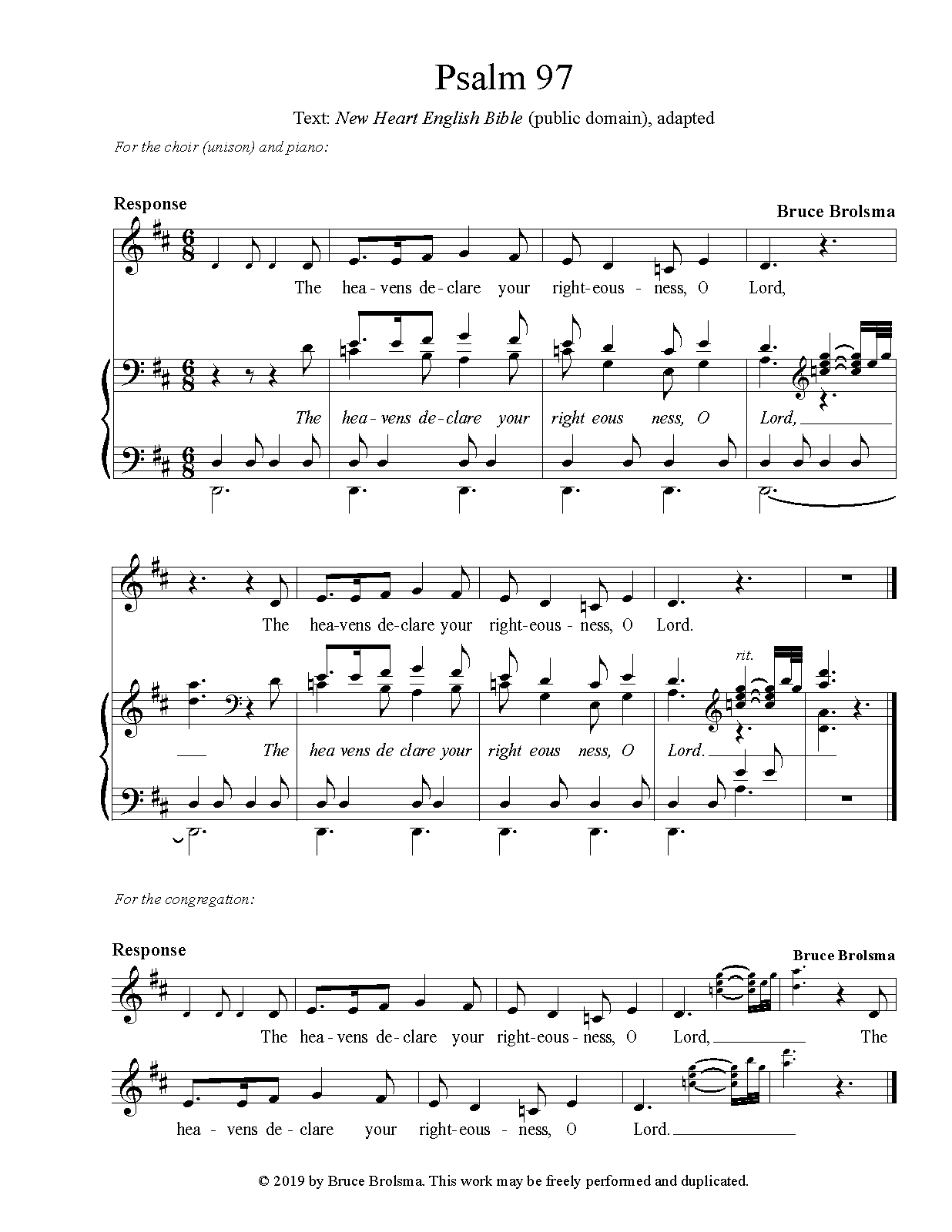 | Librettist | Psalm XCVII New Heart English Bible (public domain), adapted |