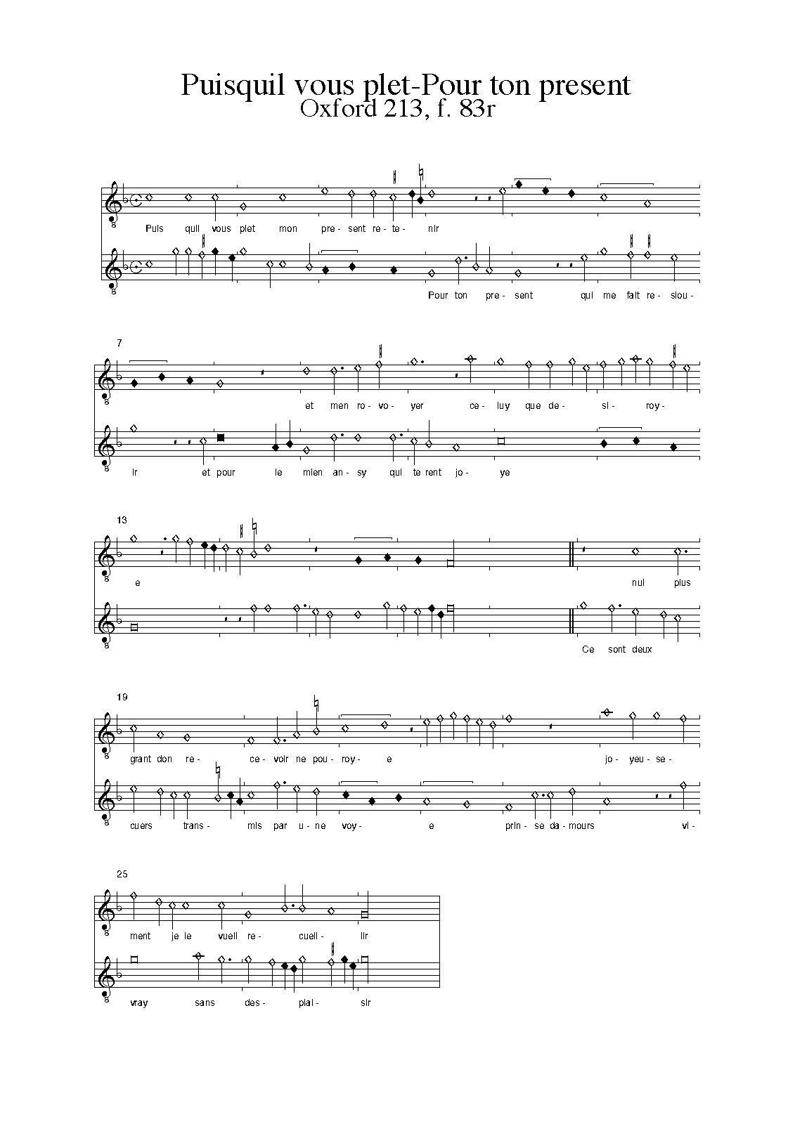 | Alternative. Title | Puisqu'il vous plet mon present retenir / Pour ton present qui me fair resjouir |