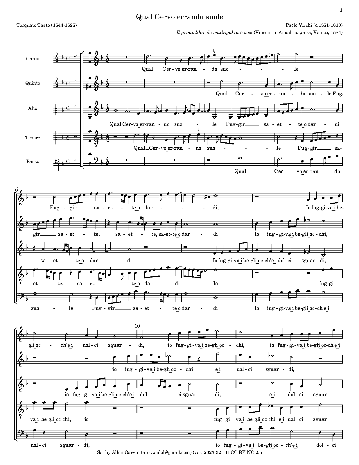 | First Publication | 1584 in Il primo libro de madrigali a 5 voci (Venice: Vincenti e Amadino press) |