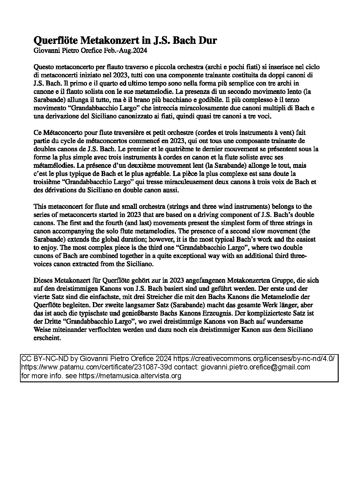 | Work Title | Querflöte Metakonzert in Bach Dur |