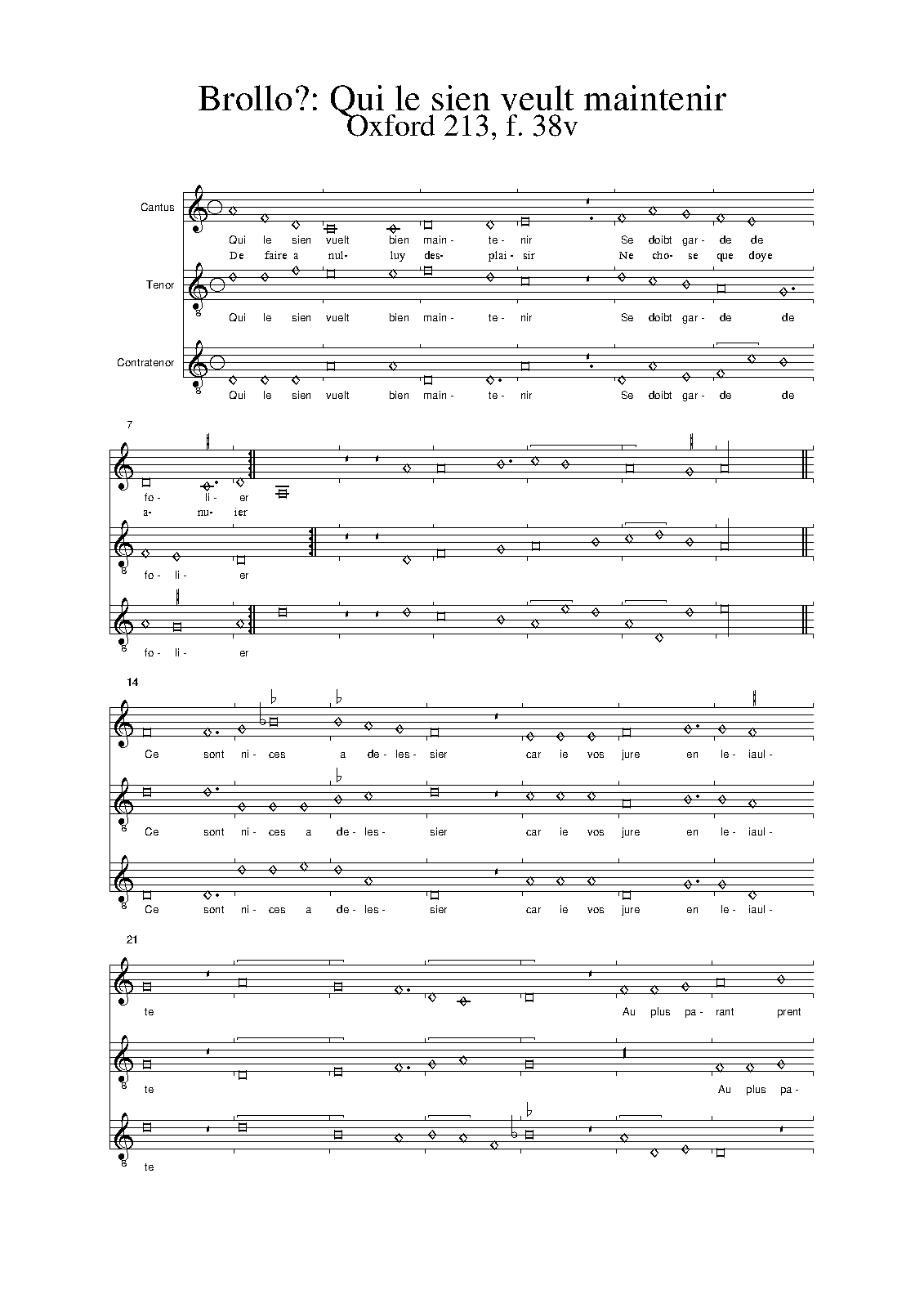| Work Title | Qui le sien vuelt bein maintenir |
