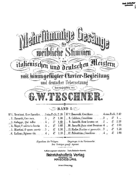 | Instrumentation | 4 voices (SSAA) and Basso Continuo |