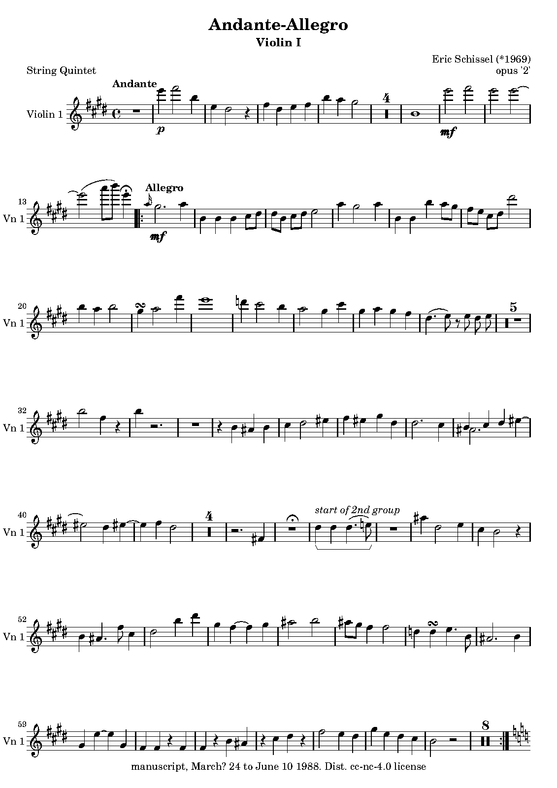 | Alternative. Title | Andante-Allegro for String Quintet, March 1988 |