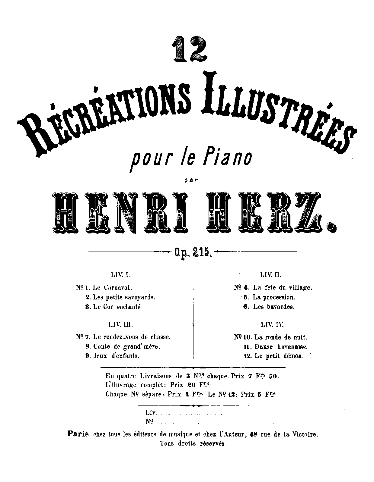 | Alternative. Title | 12 Récréations illustrées; 12 petites fantaisies caractéristiques pour le piano d'une execution facile et sans ecarts de mains |