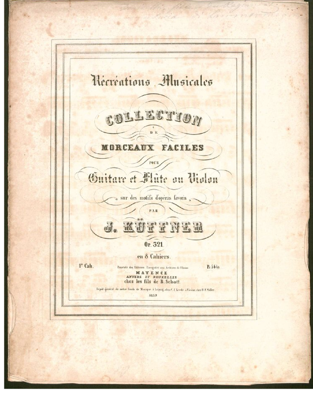 | Alternative. Title | Collection de morceaux faciles pour guitare et flûte ou violon sur des motifs d'opéras favoris |