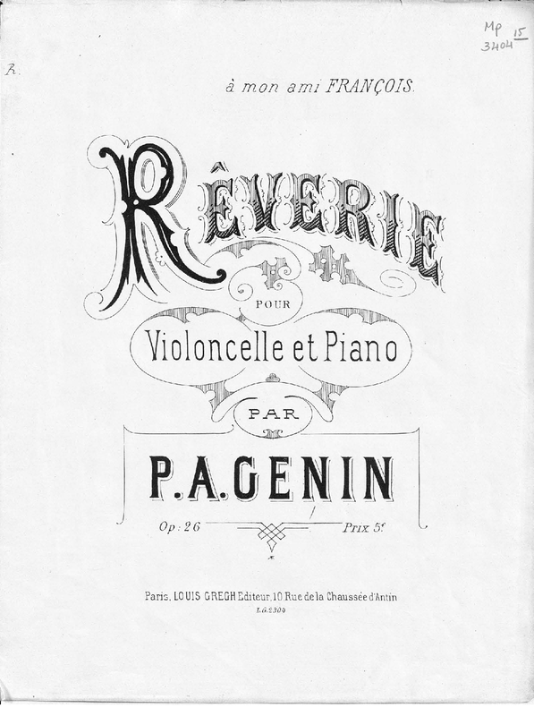 | Genre Categories | Pieces; For cello, piano; Scores featuring the cello; |