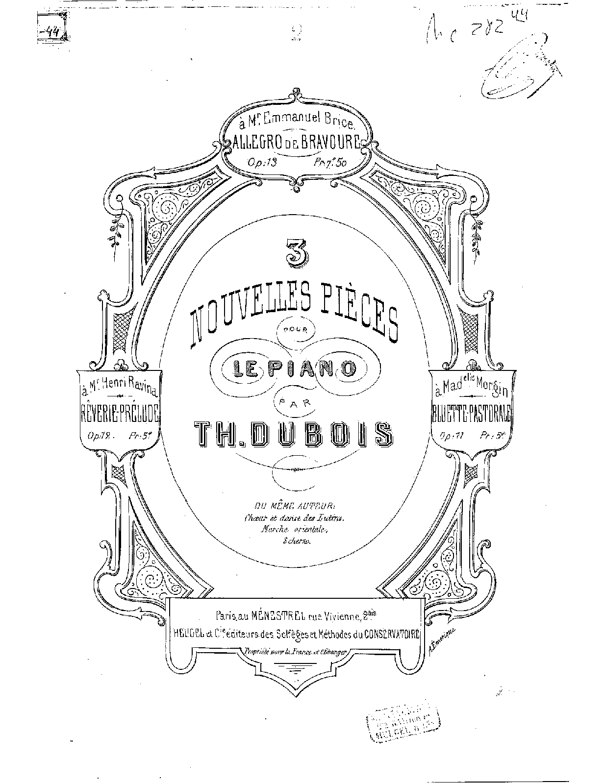 | First Publication. | 1868 – Paris: Heugel et Cie |