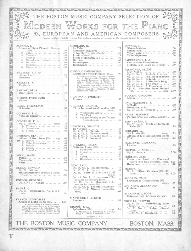 Publisher. Info. The Boston Music Company Selection of Modern Works for the Piano