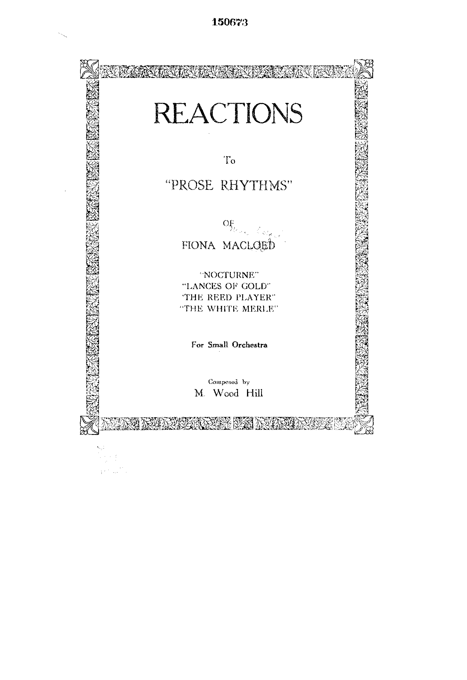 Reactions to "Prose rhythms" of Fiona MacLeod [pseud.] For small orchestra.