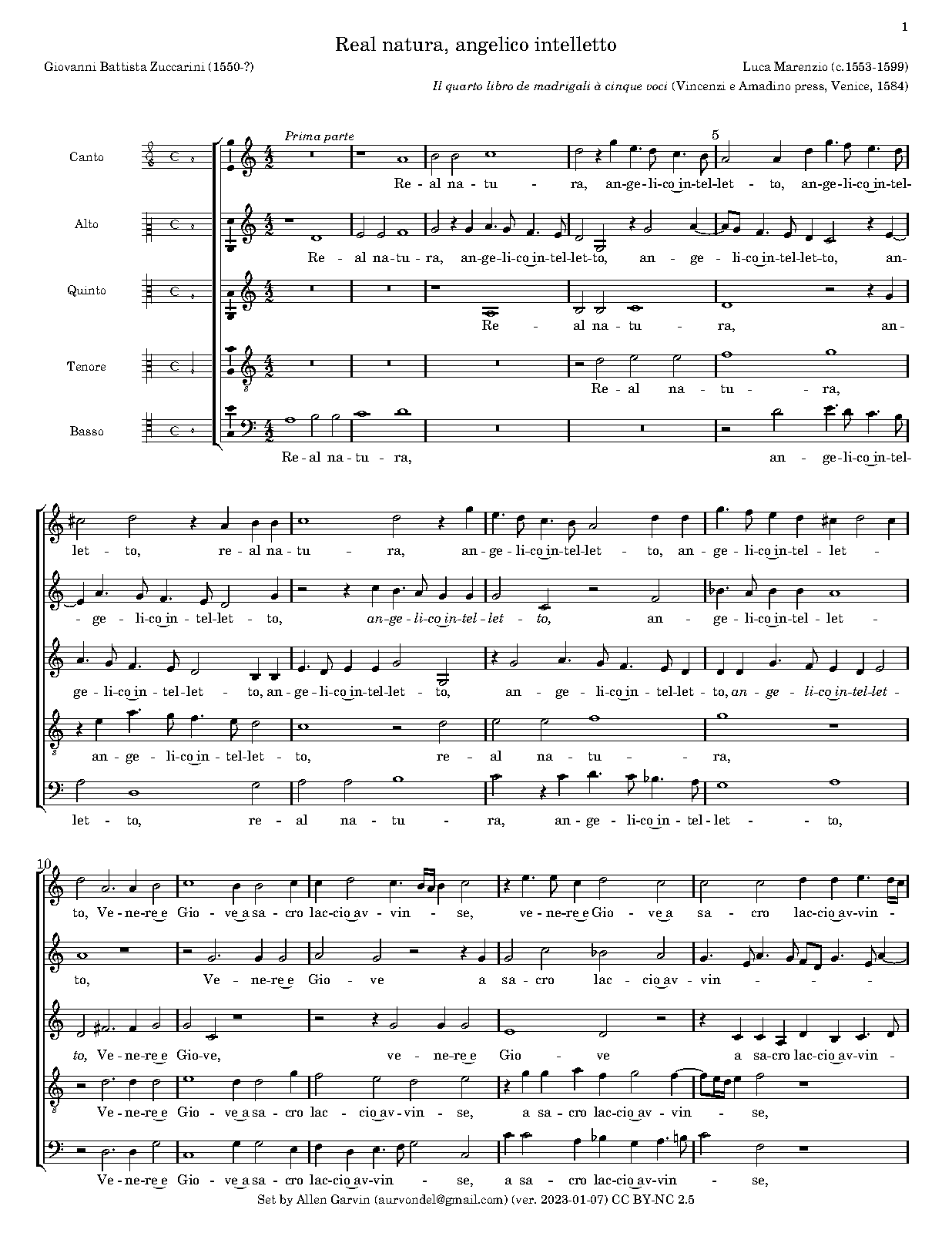 | First Publication | 1584 in Il quarto libro de madrigali à cinque voci (Venice: Vincenzi e Amadino press) |
