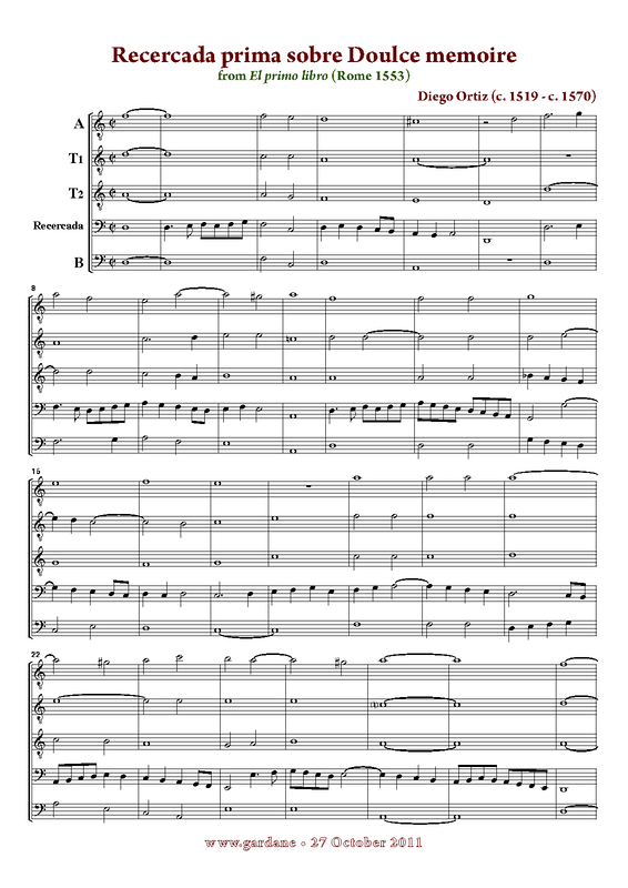 | Work Title | Recercada Quarta sobre Doulce Memoire |