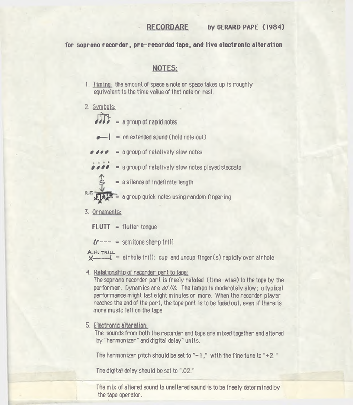 | Instrumentation | soprano recorder, tape, live electronics |