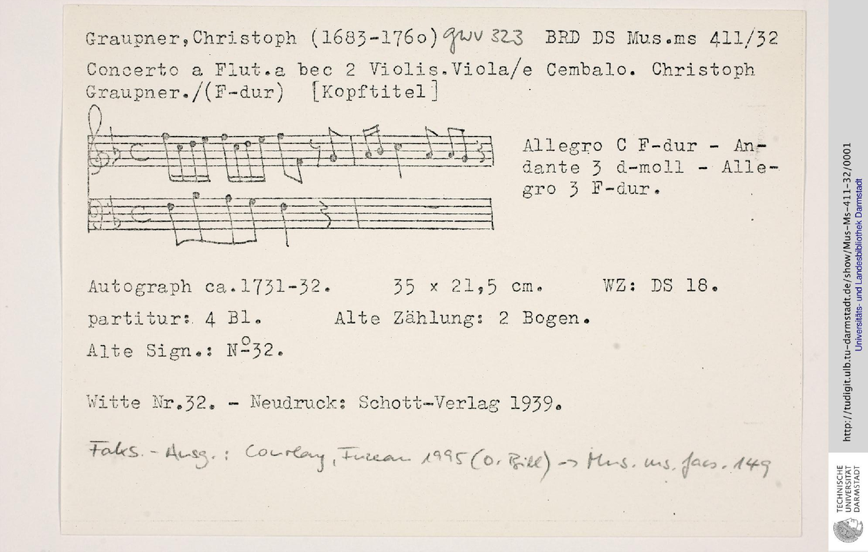 Opus/Catalogue NumberOp./Cat. No. GWV 323