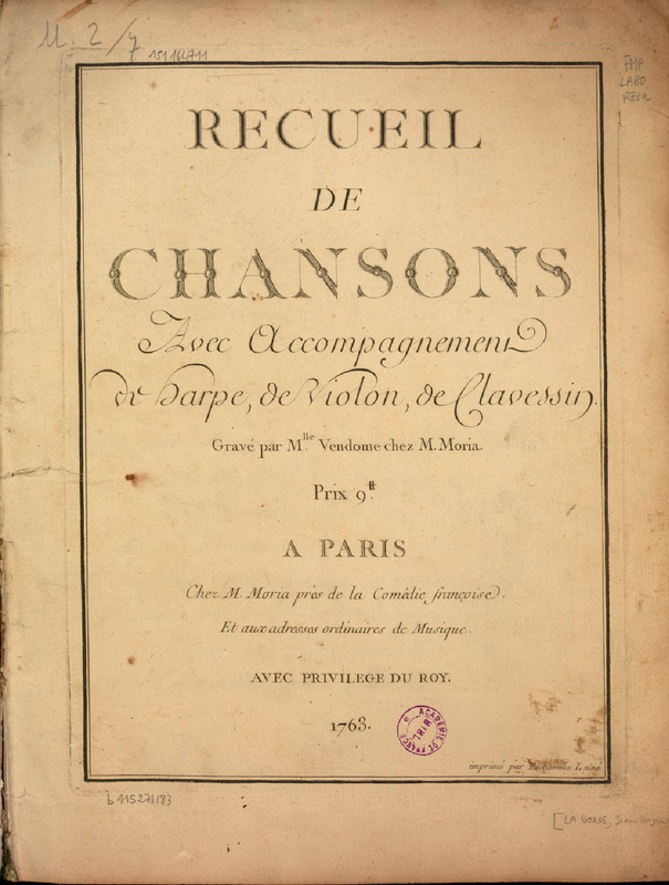 | Alternative. Title | Recueil de chansons avec accompagnement de Harpe, de Violon, de Clavessin / Clavecin |