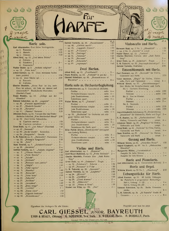 | Genre Categories | Pieces; For harp; Scores featuring the harp; For 1 player |