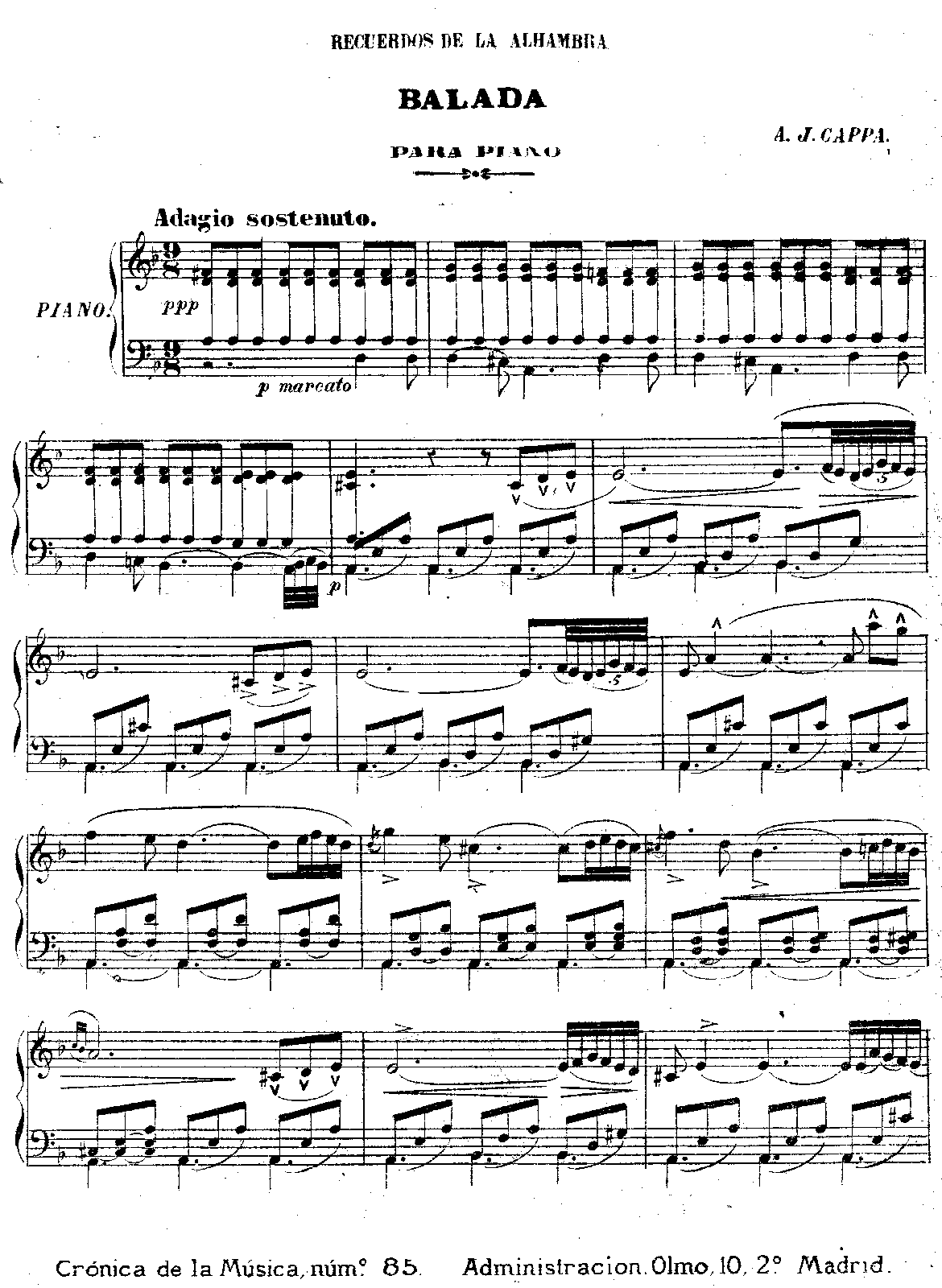 Antonio José Cappa was born in Málaga,Spain in 1824.Study in Málaga wine and I perfect his studies in Napoli,it composer different operas,symphonic works amd of chamber music.After a short stay in America it was established in Paris and finally it returned to Málaga where he died in the decade of 1880