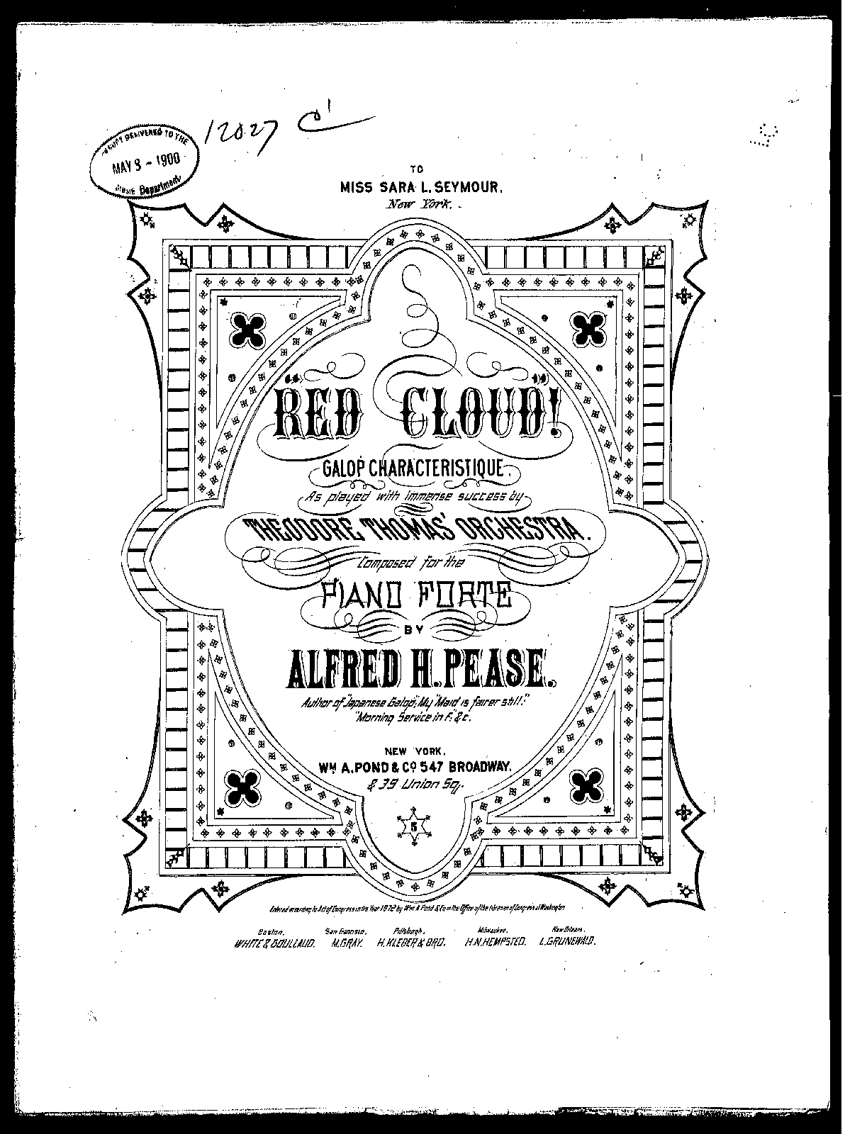"As played with immense success by Theodore Thomas' Orchestra." There is an indication of "(Cornets)" in b.56 of the piano score, so although it says "Composed for the Piano Forte", this is probably a reduction.