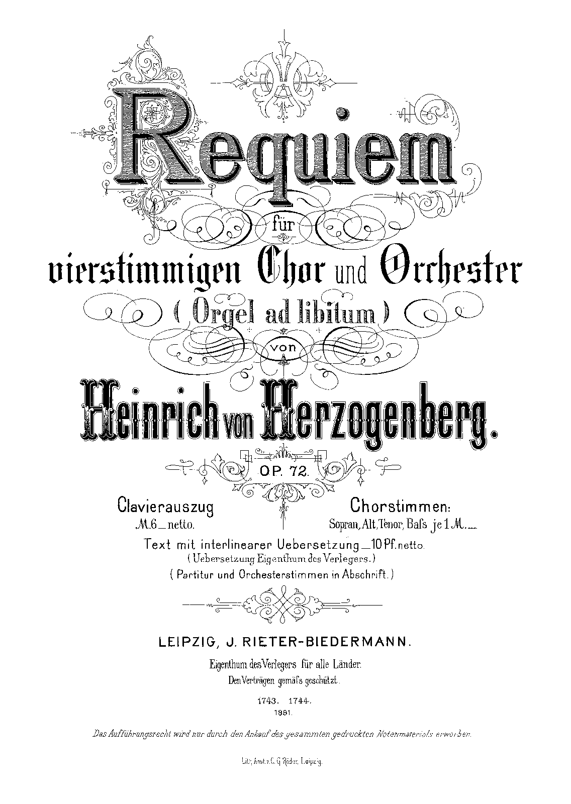 | Alternative. Title | Requiem für vierstimmigen Chor und Orchester (Orgel ad libitum) |
