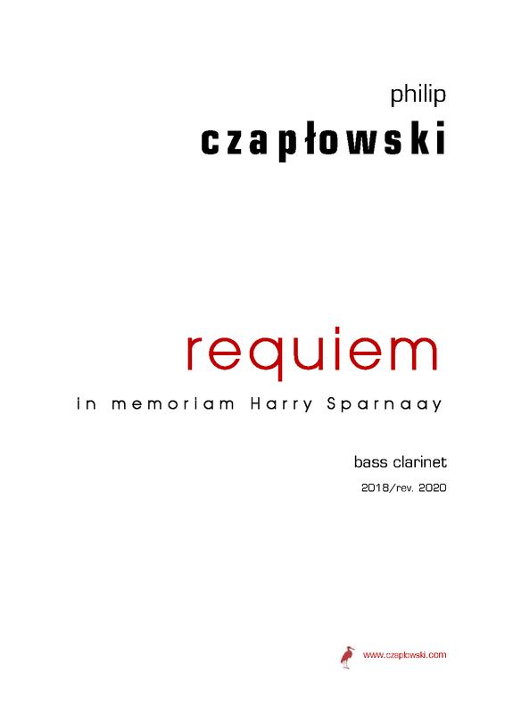 | Extra Information | Requiem for solo bass clarinet was completed in March 2018 in memory of the great Dutch bass clarinettist Harry Sparnaay, who passed away in December 2017 at the age of 73. |