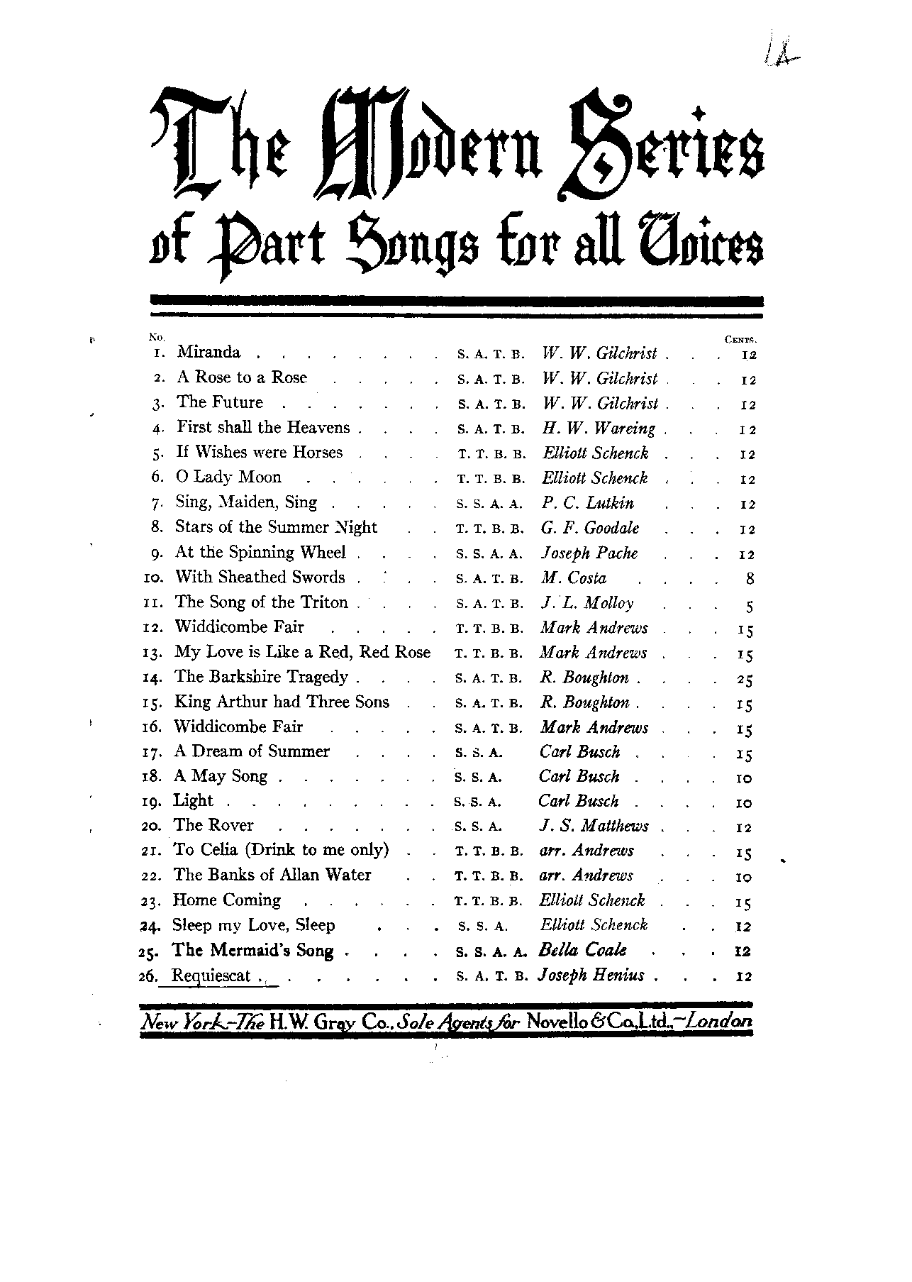 | Genre Categories | Secular choruses; Choruses; For mixed chorus, piano; |