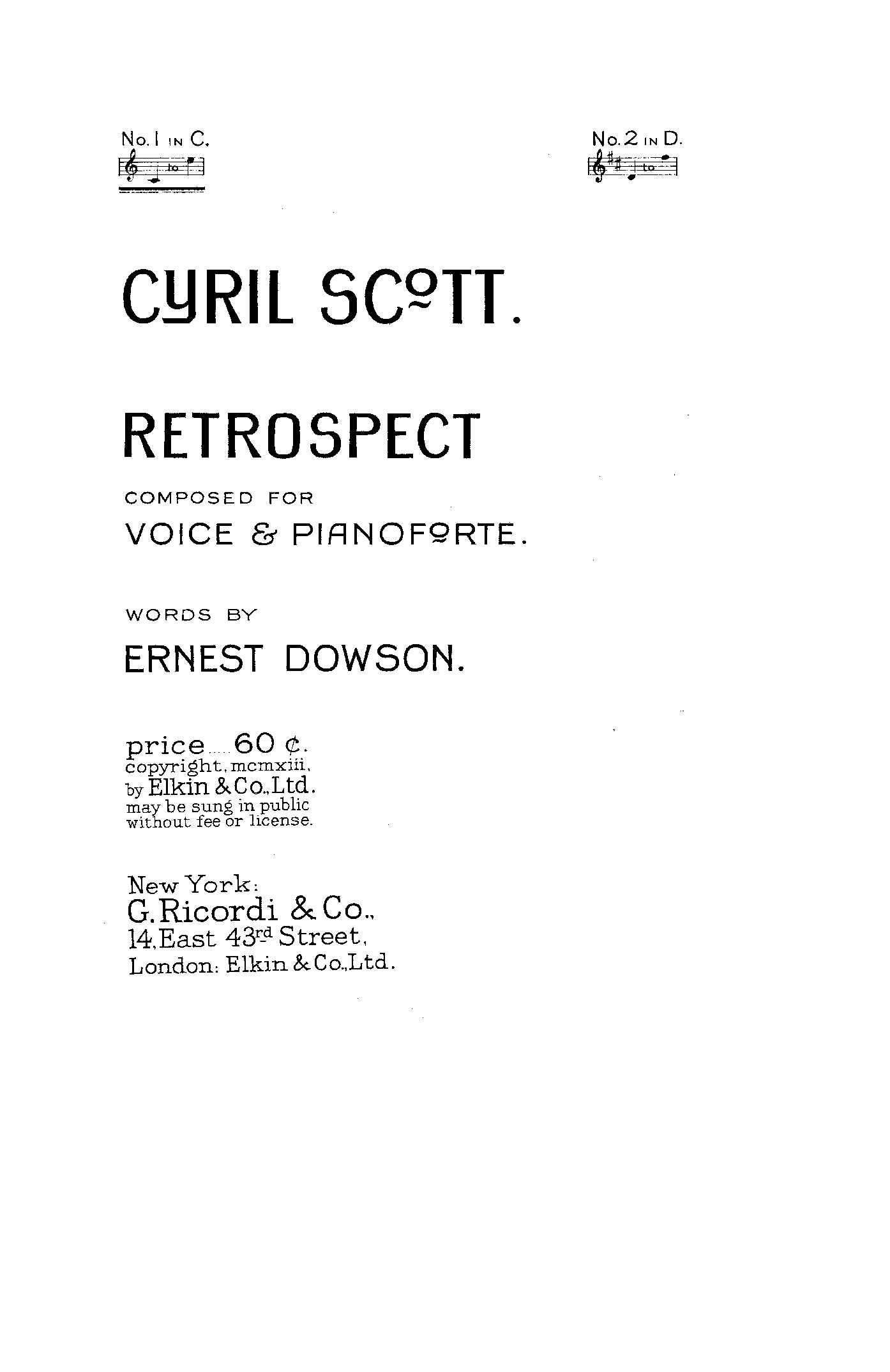 | Genre Categories | Songs; For voice, piano; For voices with keyboard; |