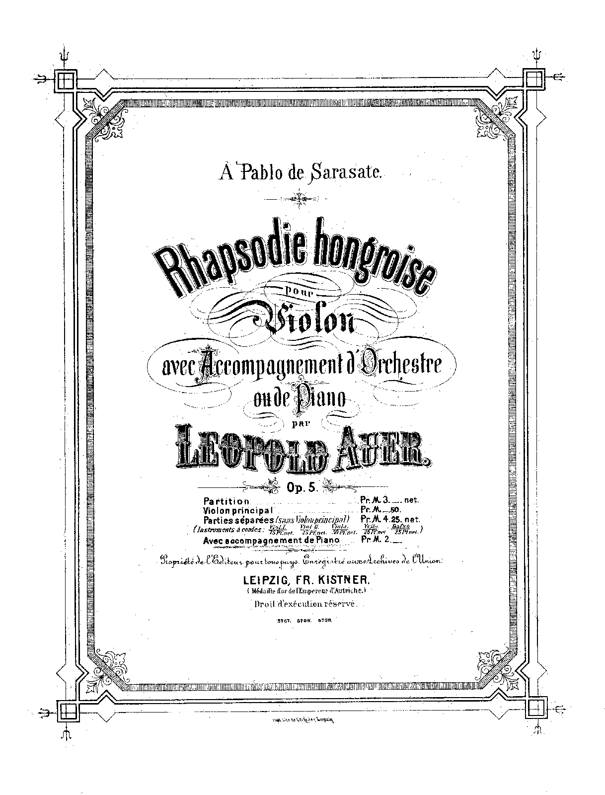 | Genre Categories | Rhapsodies; For violin, orchestra; Scores featuring the violin; |