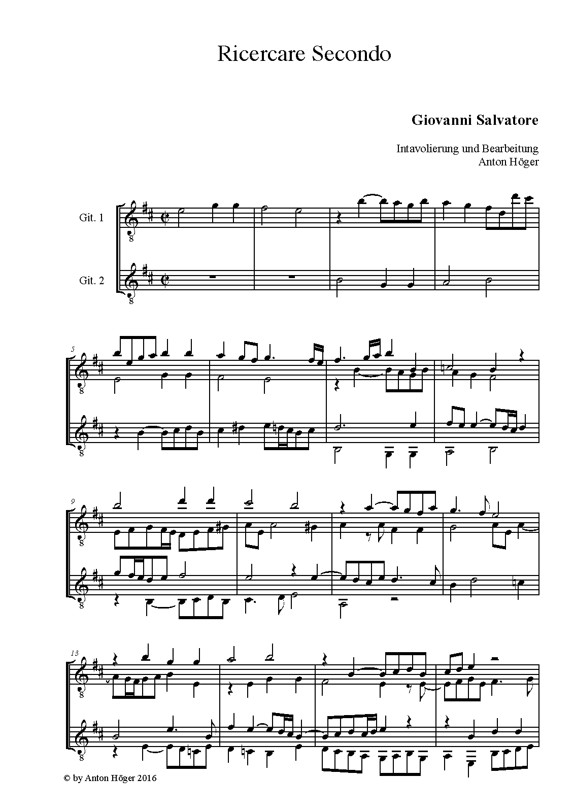 Ricercare Secundo, del Secundo Tuono alla quarta alta, con due Fughe, e suoi Riversi