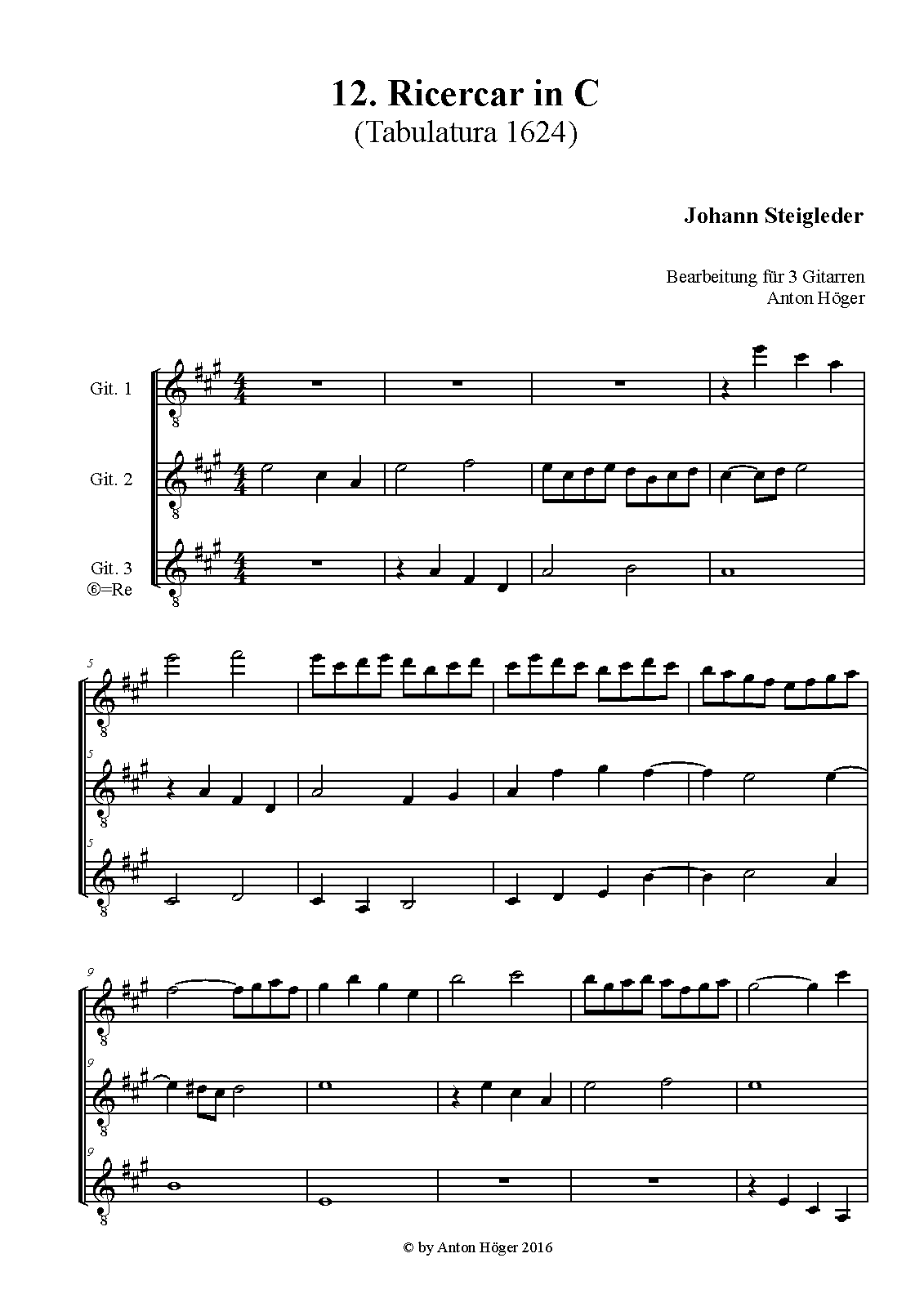 | First Publication | 1624 in Ricercar tabulatura organis |