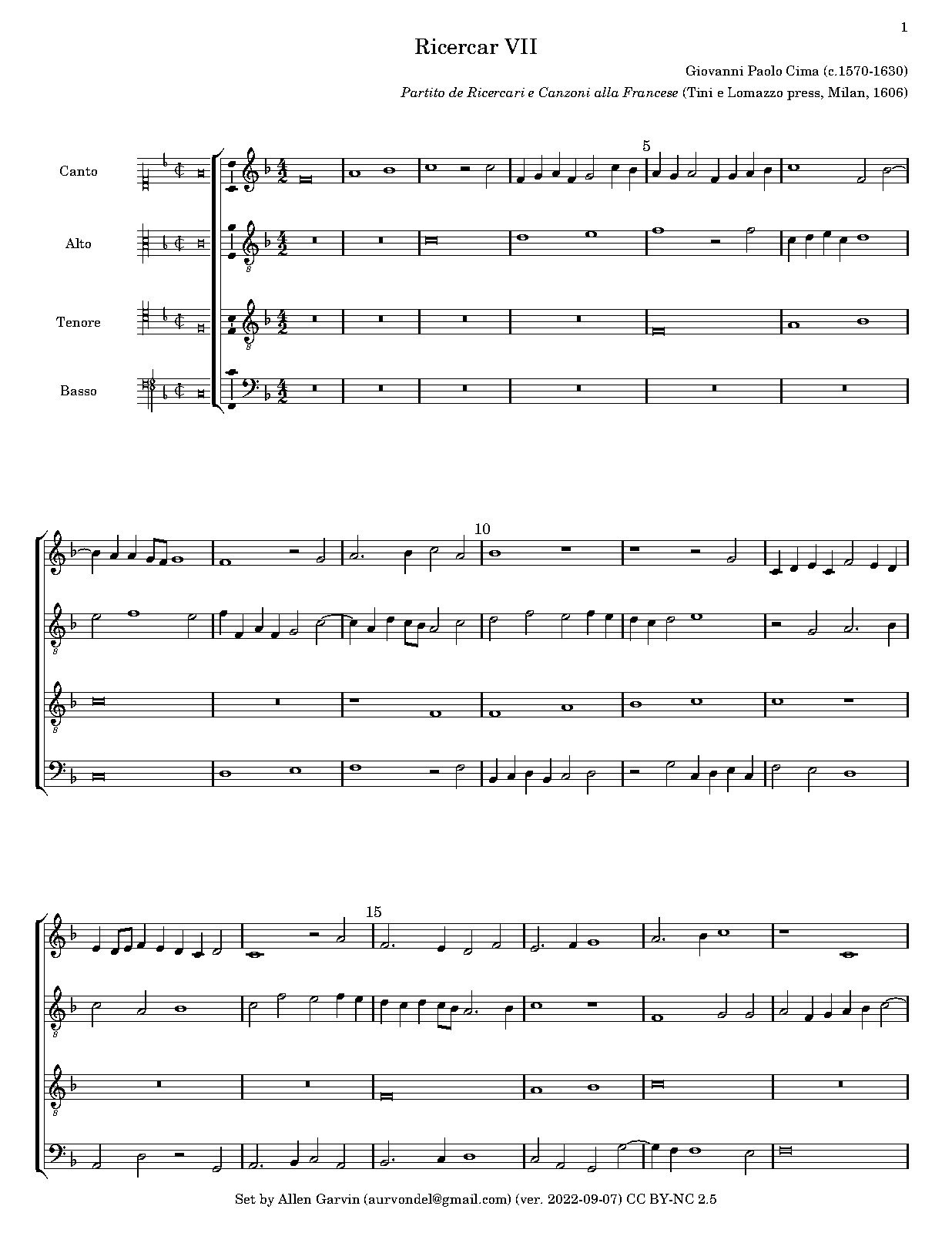 First Publication. 1606 in Partito de Ricercari e Canzoni alla Francese