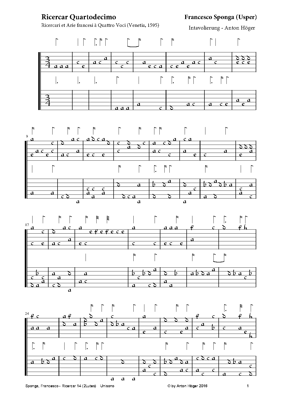 Misc. Notes Intabulation in French Lute-tablature (Unisono). If performed I would look forward about a small reference to my efforts.