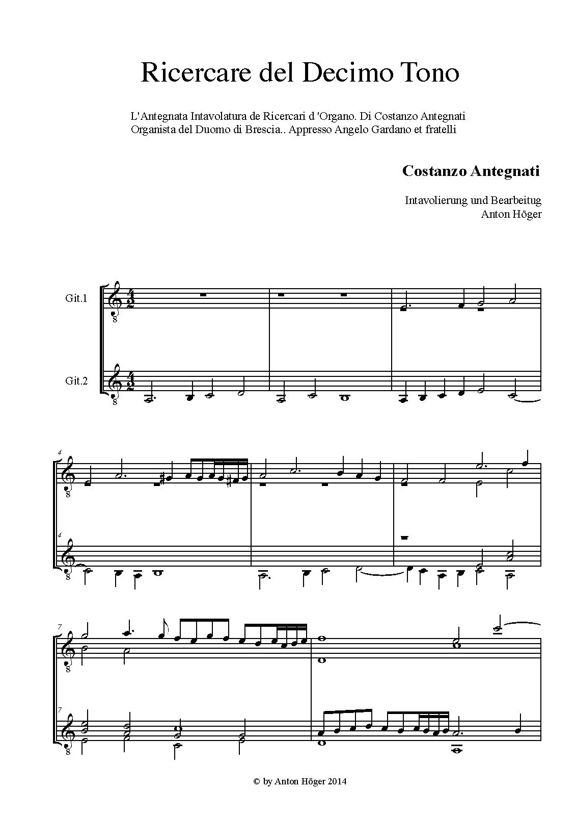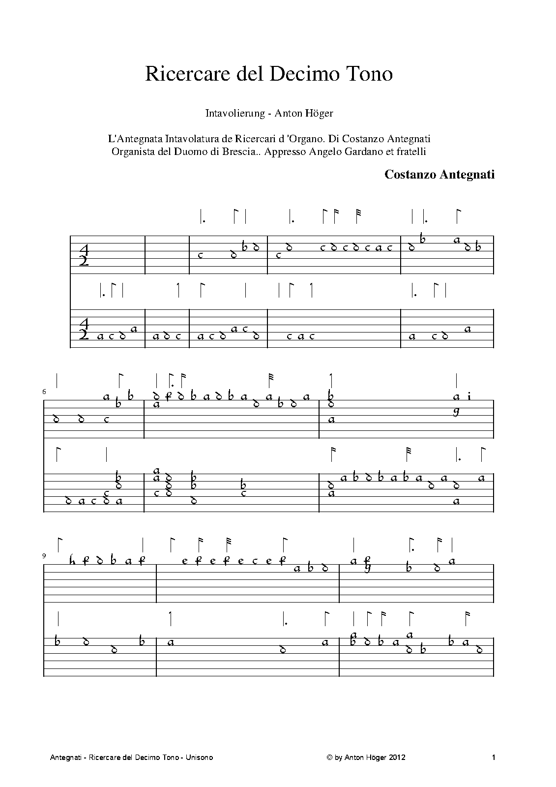 | First Publication | 1608 in L’Antegnata Intavolatura de Ricercari d’Organo |