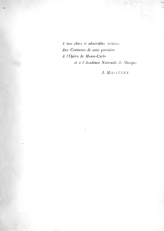 | Dedication | A mes chers et admirables Artistes Aux Créateurs de cette partition A l'Opéra de Monte-Carlo et à l'Academie Nationale de Musique |