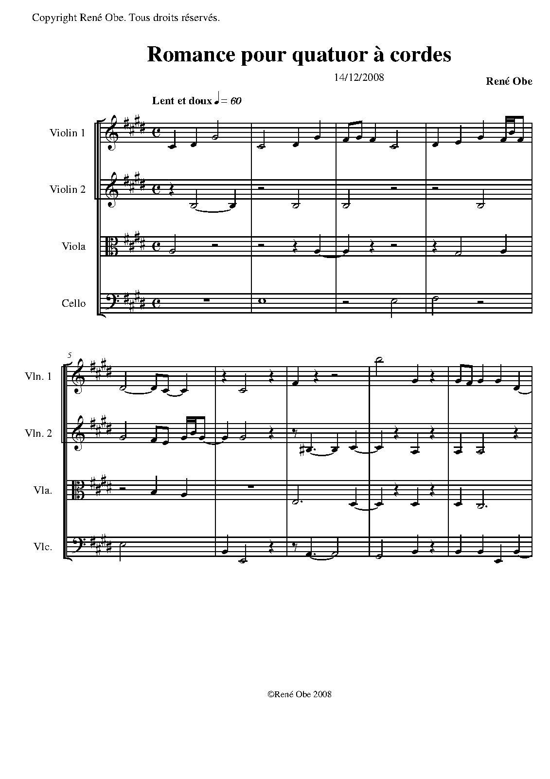 | Genre Categories | Romances; For 2 violins, viola, cello; Scores featuring the violin; |