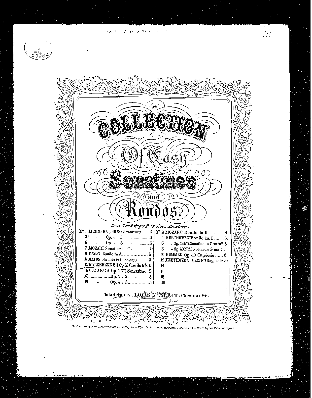 Publisher. Info. Philadelphia: Louis Meyer, 1872. Plate L.M. 289.