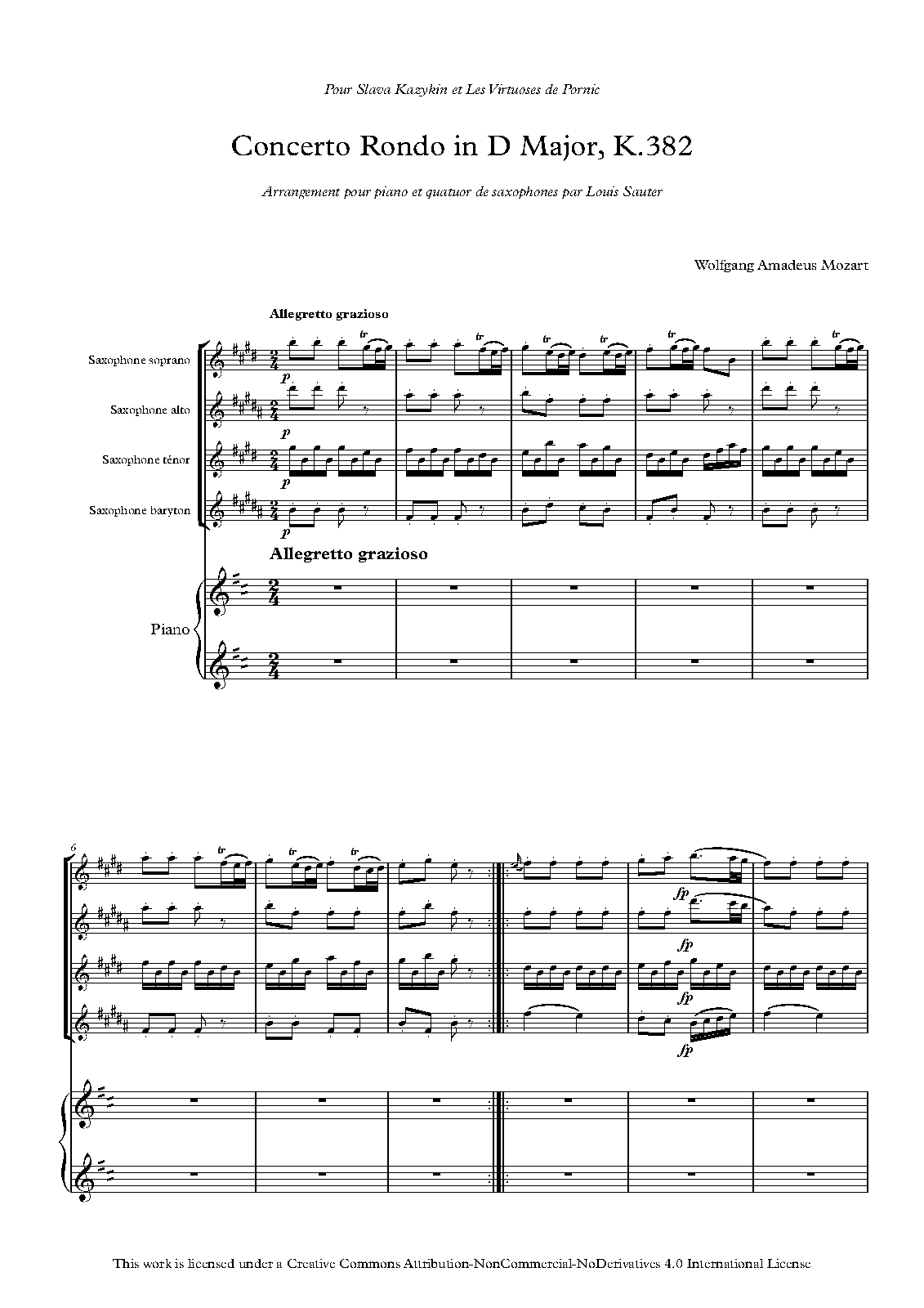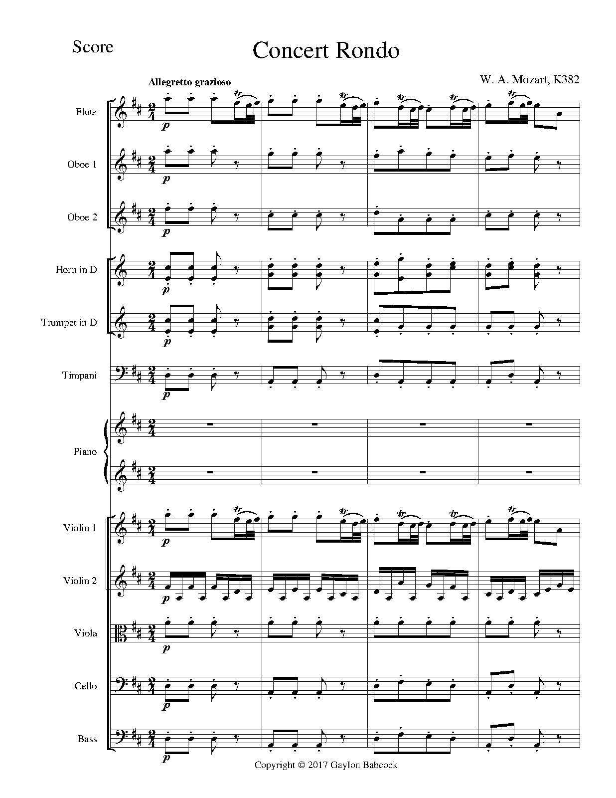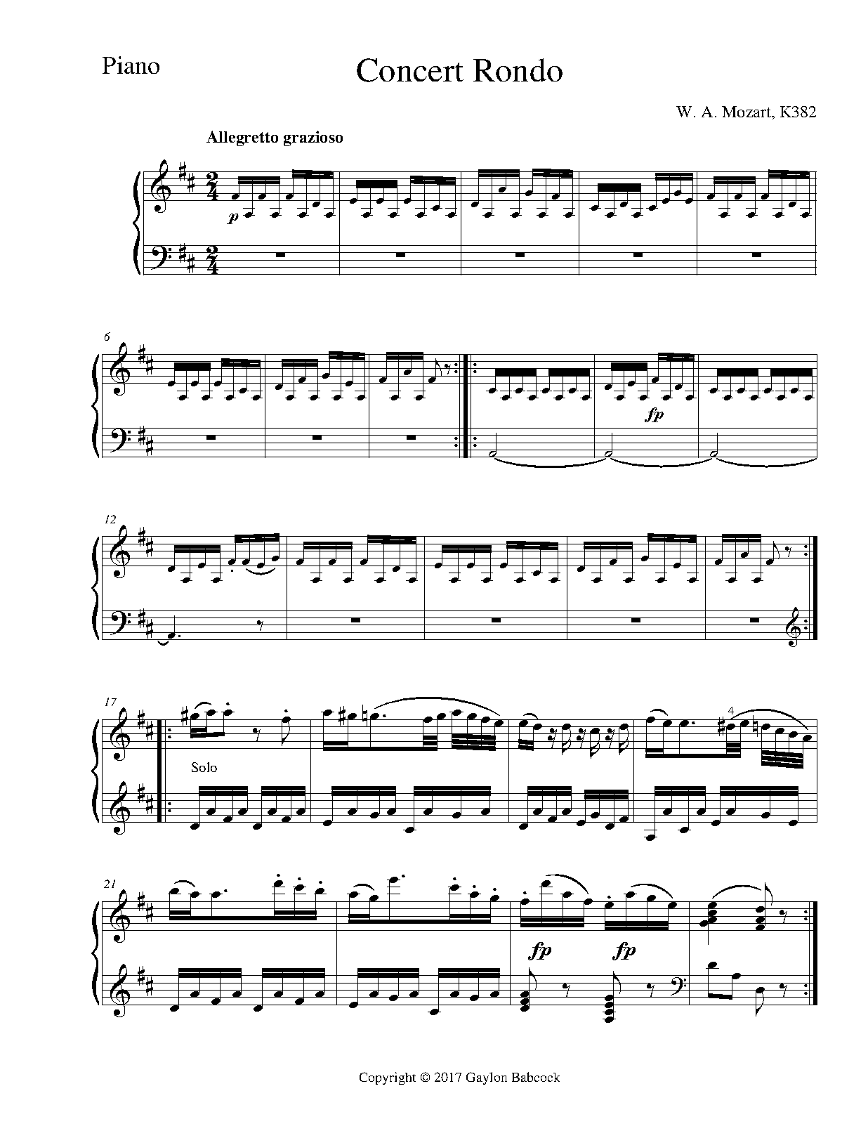 Name Aliases K 382; Rondo for piano og orkester i D av Mozart; Rondó en re mayor para piano y orquesta; KV 382; Rondo para piano y orquesta en re mayor; Rondo en re mayor para piano y orquesta; K. 382; Concert-Rondo für Clavier; Konzert-Rondo für Clavier; Konzert-Rondo für Klavier und Orchester; Konzert-Rondo KV 382