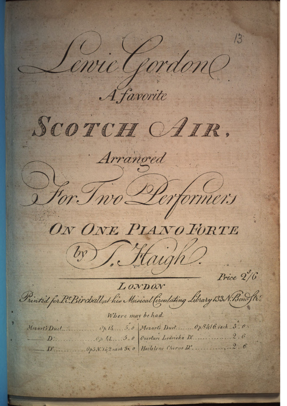 | Alternative. Title | Lewie Gordon. A favorite Scotch Air, arranged for two performers on one piano forte |